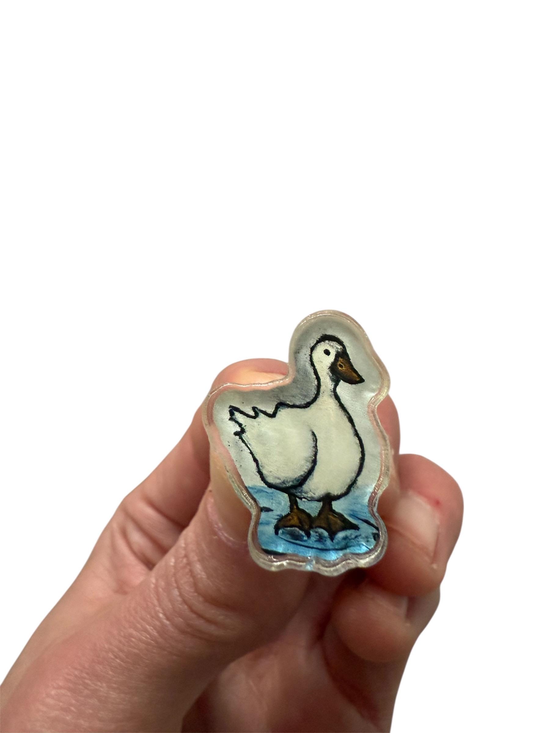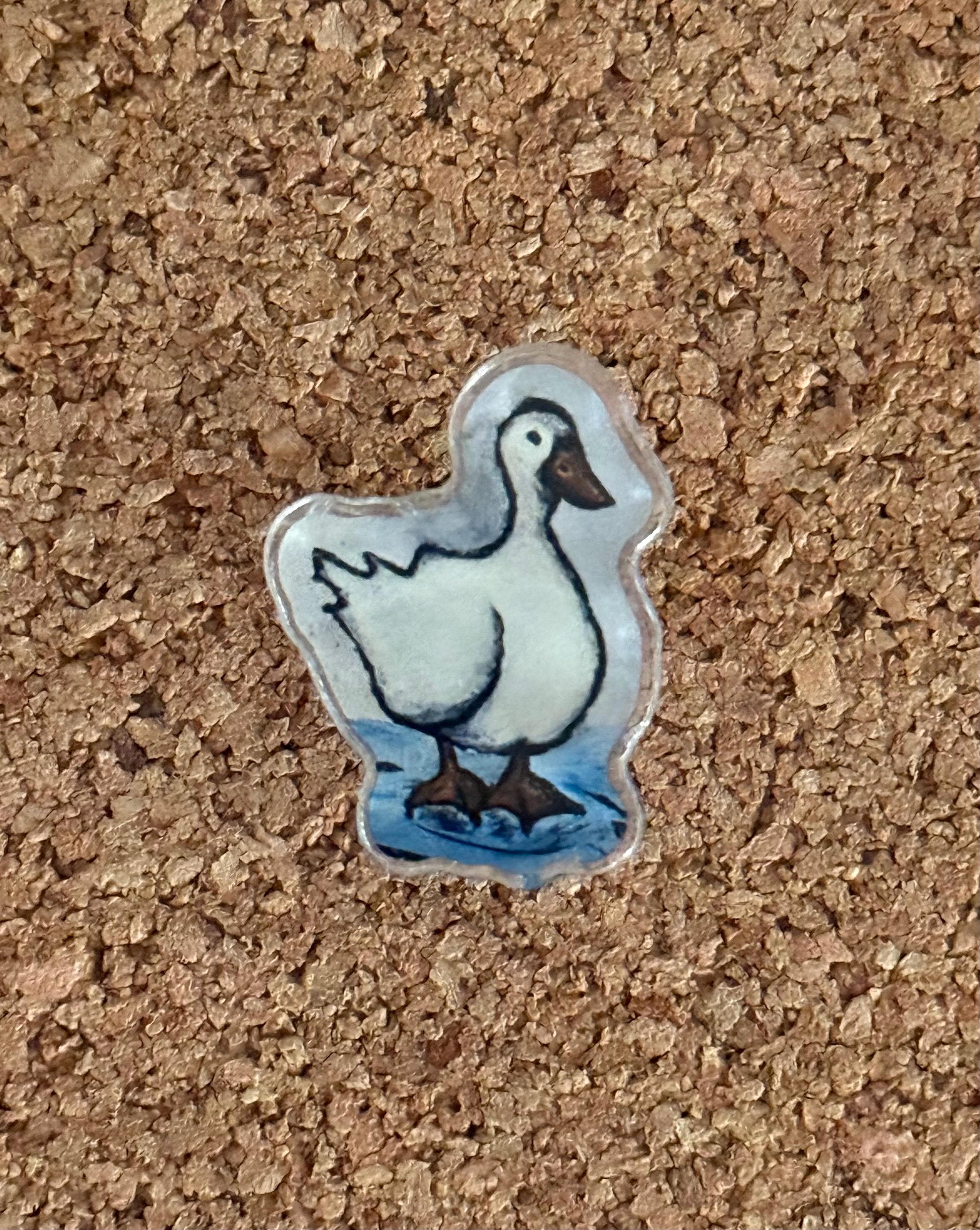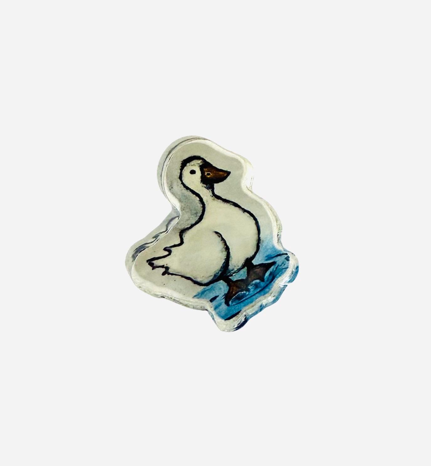 This collectible pin is created from an original artwork. Each detail captures the duck’s spirit and their calm and curious nature - simple, expressive, and unapologetically itself.